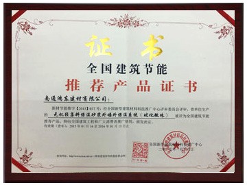 全國建筑節(jié)能推薦產(chǎn)品證書
